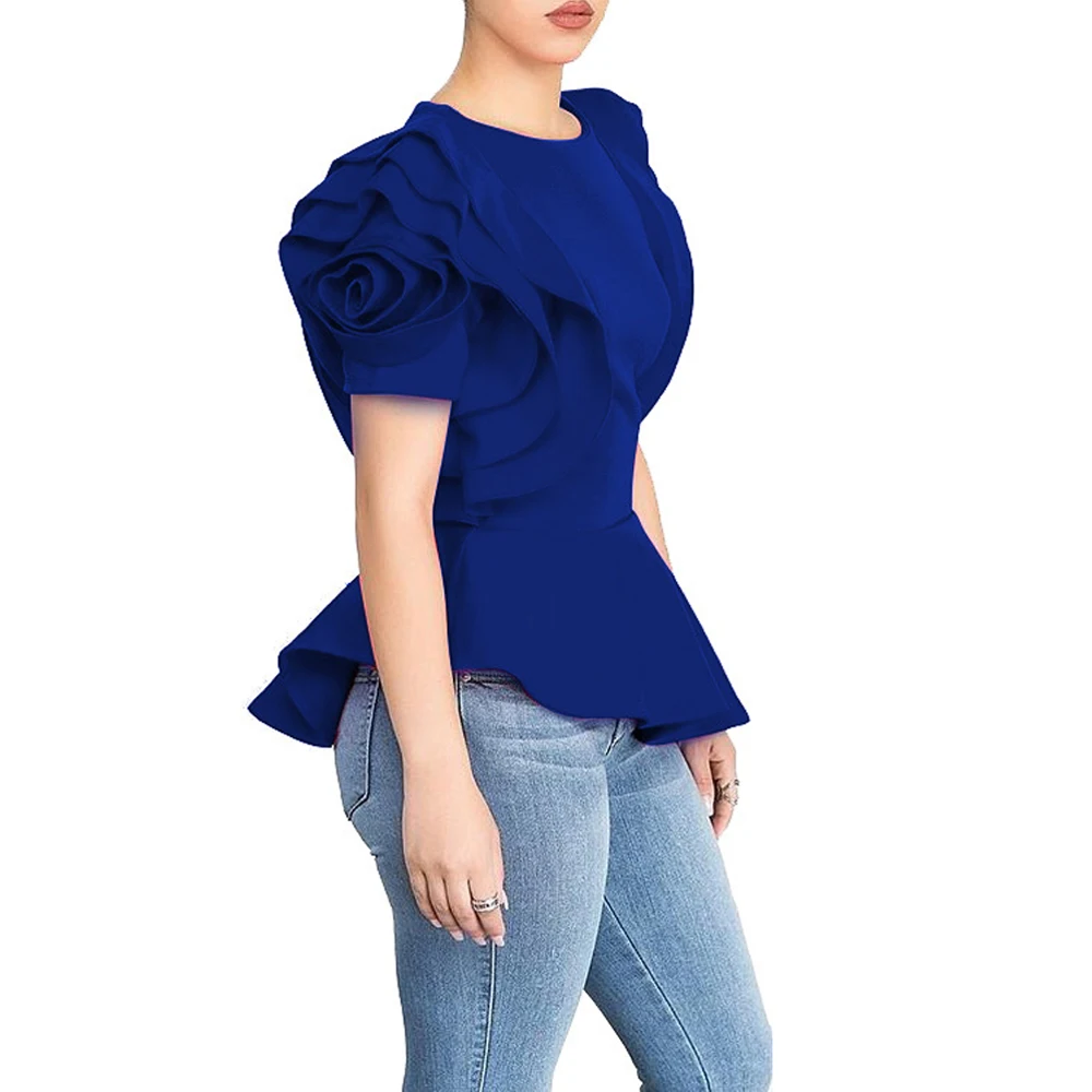 Beste Koop 2018 Vrouwen Mode Zomer O hals Ruches Mouwen Asymmetrische Hem Slim Tops Blouse Goedkoop