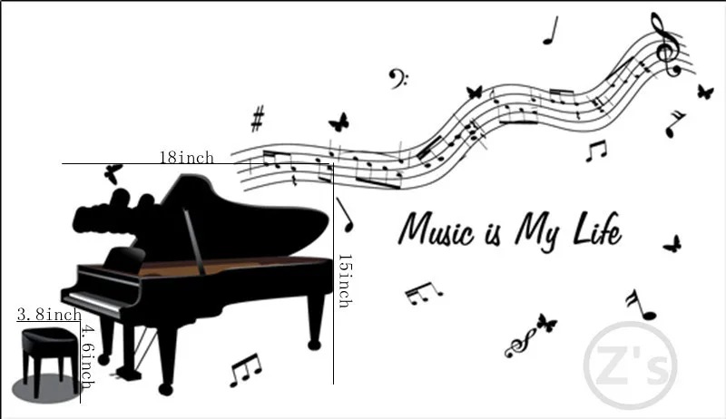 Special Price - Zs Sticker Piano wall stickers Musical equipment home decor music adhesive for Musician minstrel musical instruments Wonderfull
