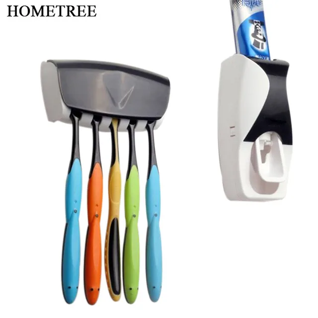 Very Good - HOMETREE Fashion Home Automatic Toothpaste Dispenser Toothbrush Holder Bathroom products Wall Mount Rack Bath set ToothpasteH121